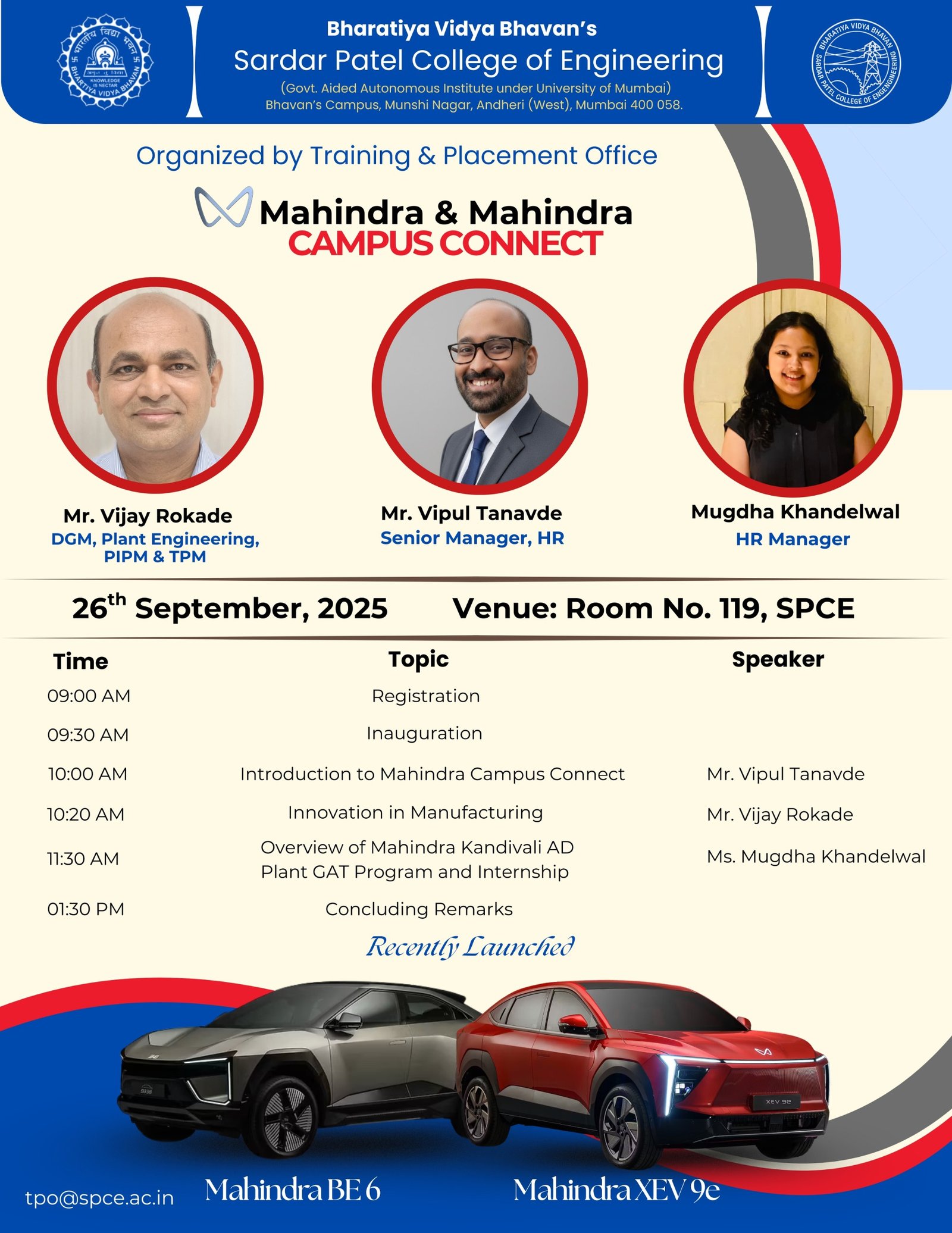 Mahindra & Mahindra Campus Connect Program on 26.09.2025, organised by Training & Placement Office